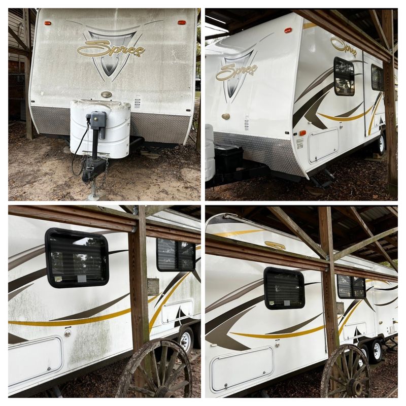 Exterior surfaces are cleaned using low pressure systems that break down dirt, algae, and organic growth without harming paint or material.